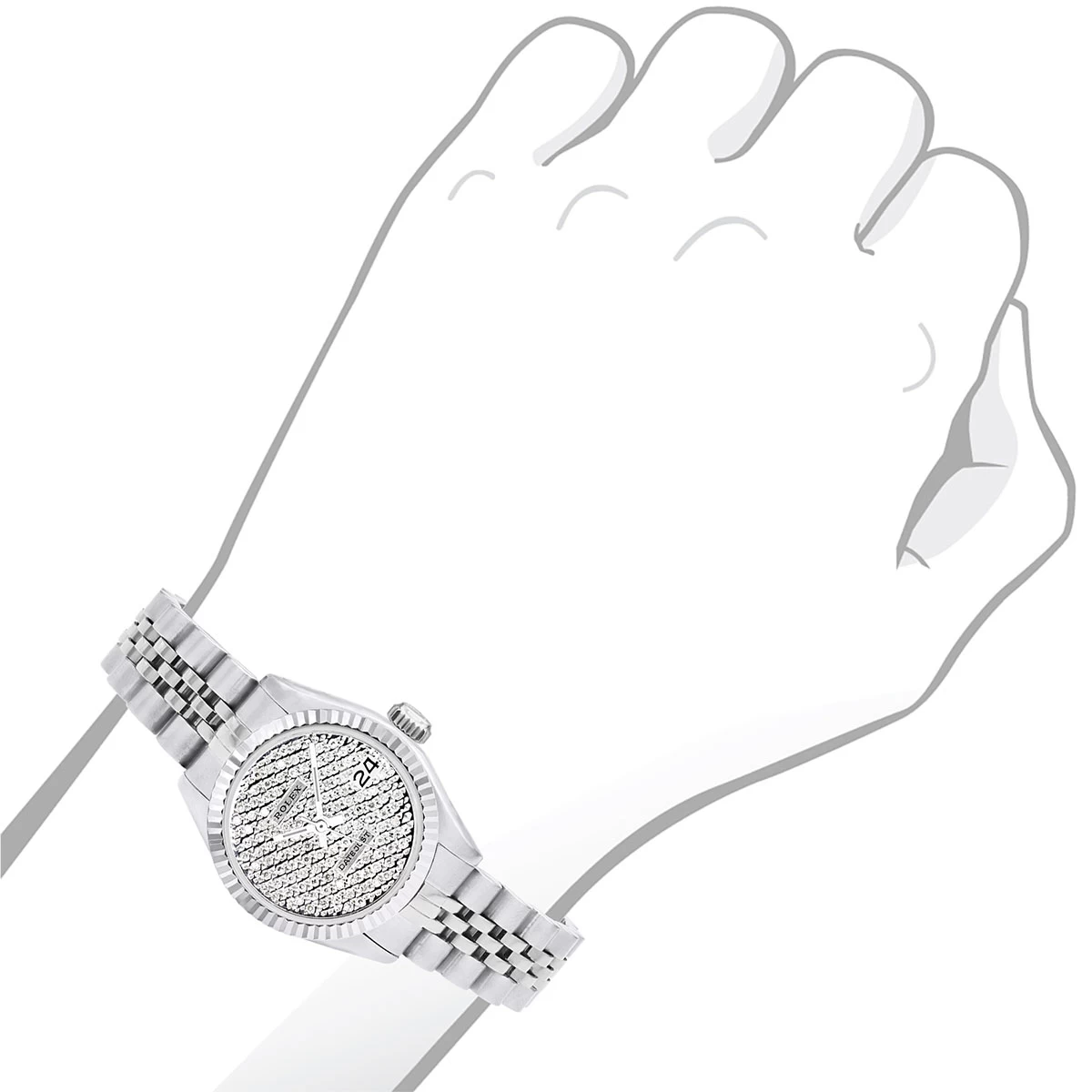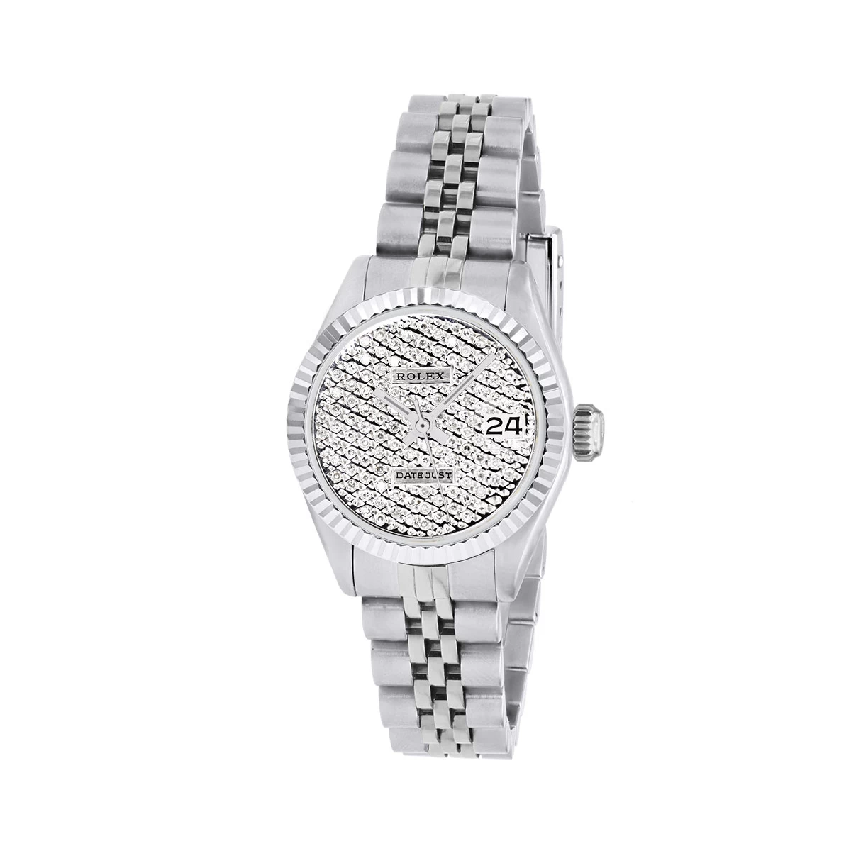 Women’s Diamond Watch Rolex Datejust 26mm Jubilee Bracelet Iced Out Dial. This diamond Rolex watch is pre-owned, in excellent condition, and comes in a Rolex box with a full warranty from ItsHot.com. Customize the look of the watch if you prefer with diamond bezel or fluted bezel. Each watch can be additionally customized with diamonds on the case as well as band (please contact us for details).
