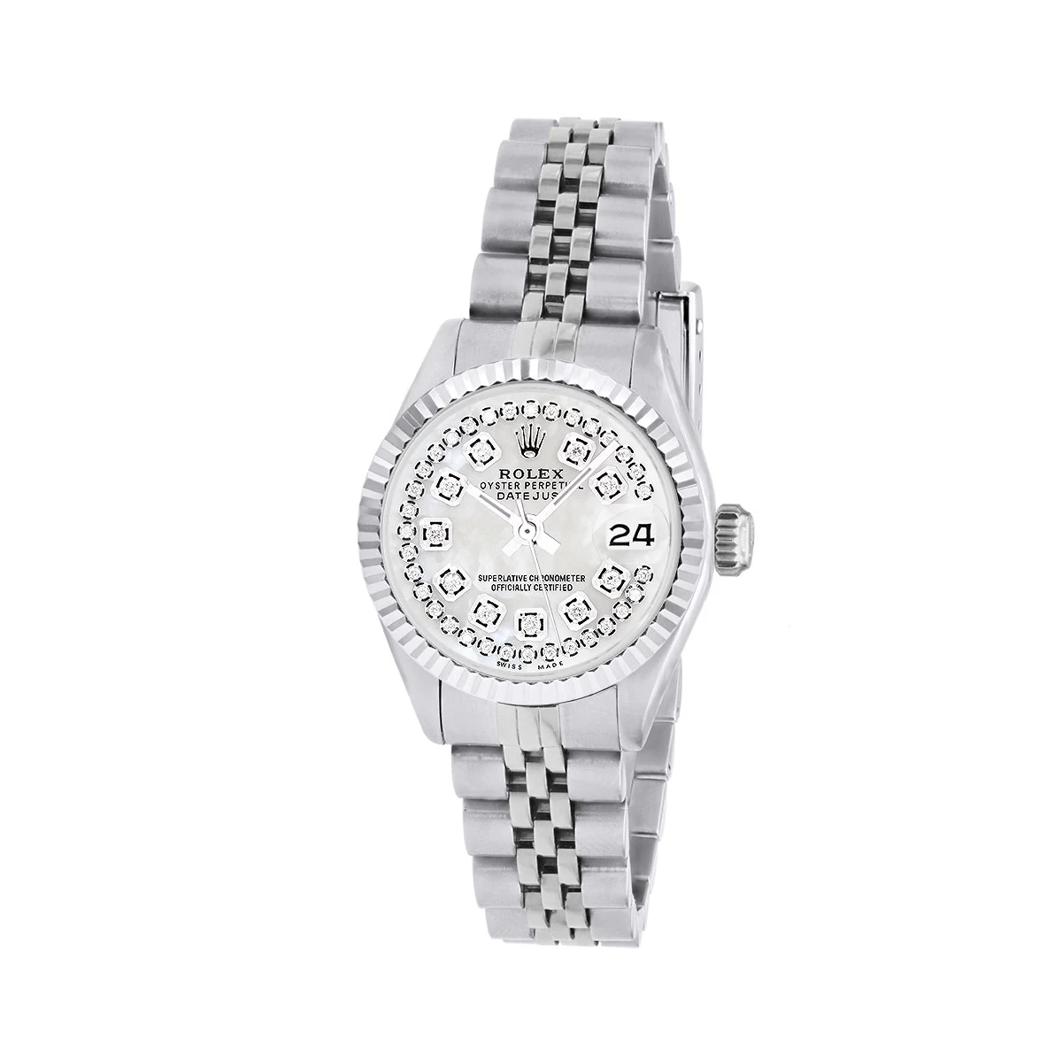 Women’s Diamond Watch Rolex Datejust 26mm Jubilee Bracelet MoP. This diamond Rolex watch is pre-owned, in excellent condition, and comes in a Rolex box with a full warranty from ItsHot.com. Customize the look of the watch if you prefer with diamond bezel or fluted bezel. Each watch can be additionally customized with diamonds on the case as well as band (please contact us for details).