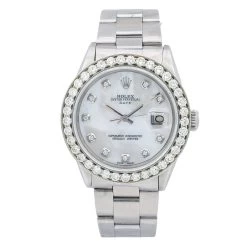 Women’s Diamond Rolex Watch Oyster Perpetual Datejust 34mm Mother-Of-Pearl Dial Oyster Bracelet