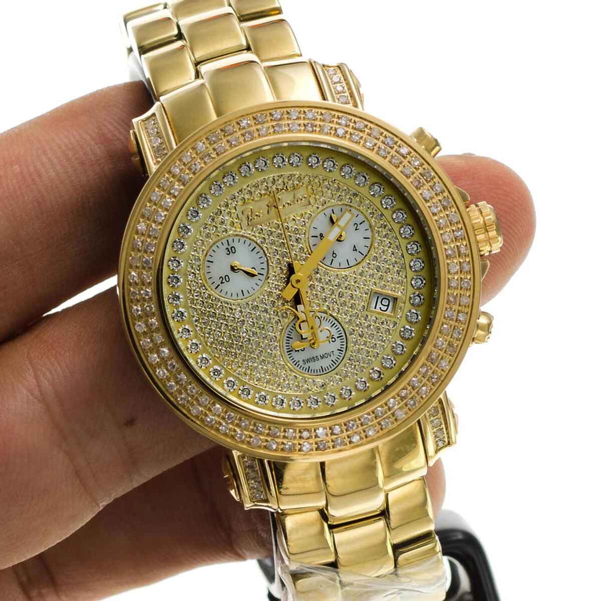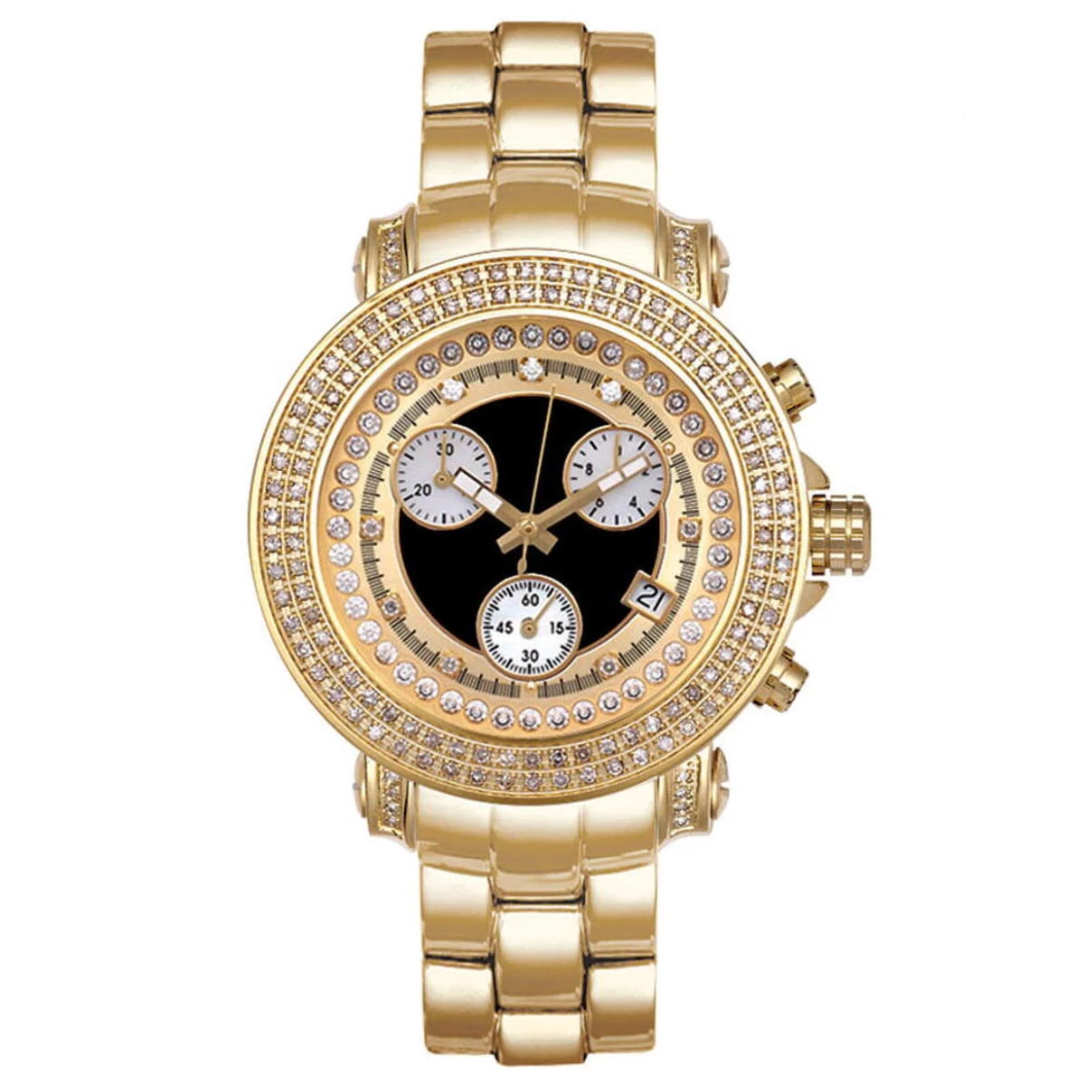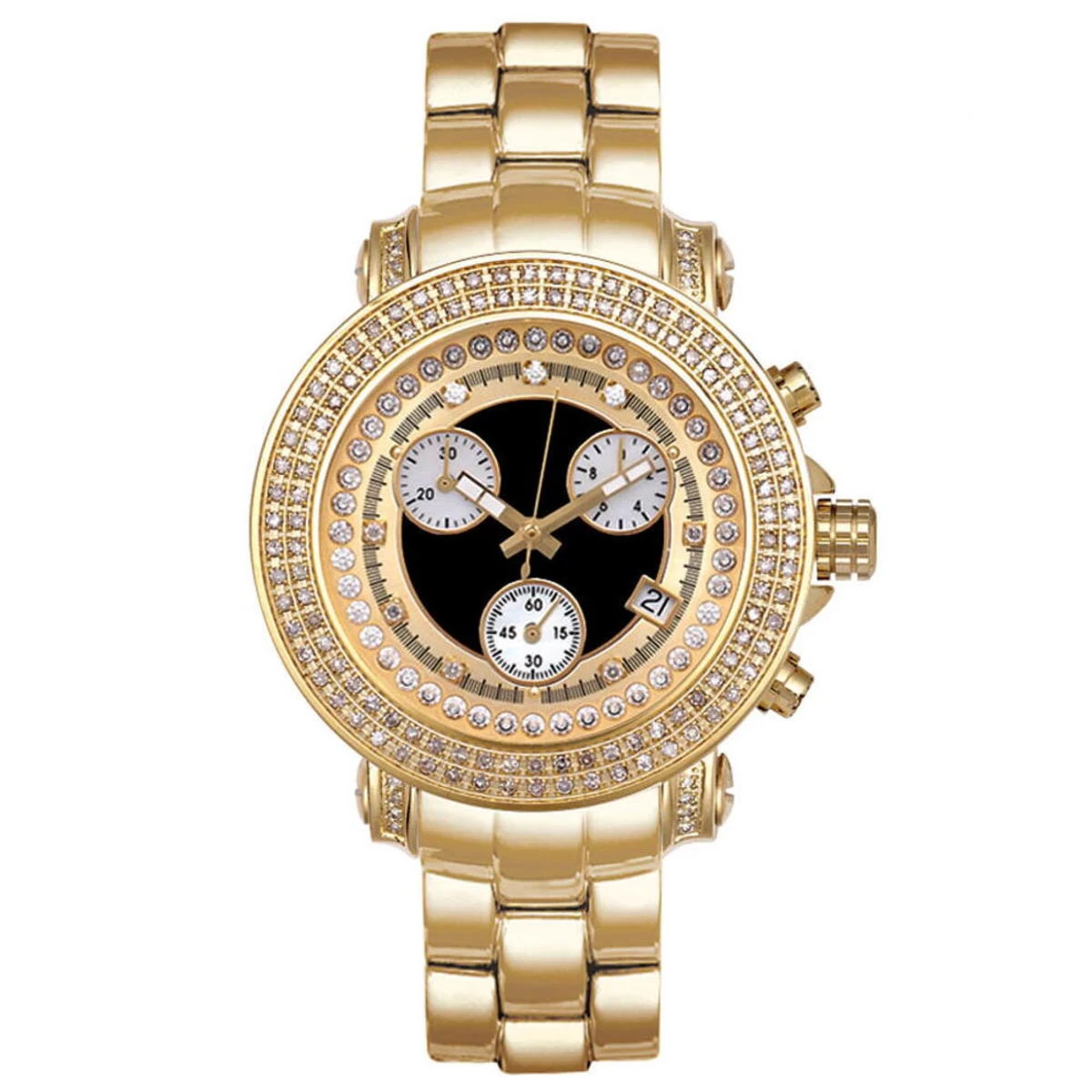 This Joe Rodeo women’s diamond watch (Yellow Gold Rio) features sparkling round diamonds on the bezel and lugs totaling 1.25 carats that are set on a Yellow Gold highly polished Stainless Steel case. This women’s diamond Joe Rodeo watch has yellow gold tone stainless steel dial with black Mother of Pearl centerpiece and white subdials. This watch is water-resistant to 100 meters (330 ft). A Swiss made quartz movement will accurately keep time for you. This diamond watch by Joe Rodeo comes with two interchangeable straps in different colors. The patented strap adjusts once for a perfect fit, and comes on and off with the press of a button.